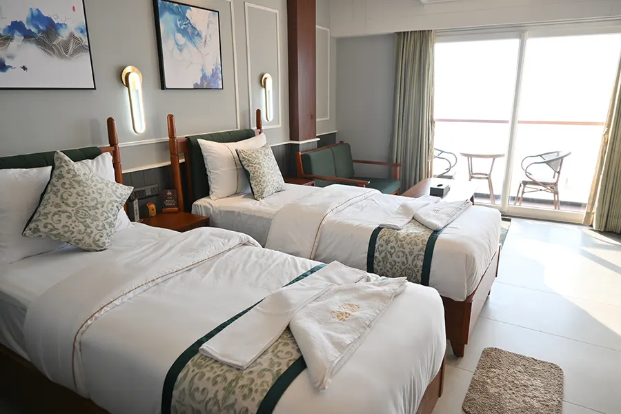 Experience breathtaking sea views from your elegant AC Suite, designed for ultimate comfort and relaxation.